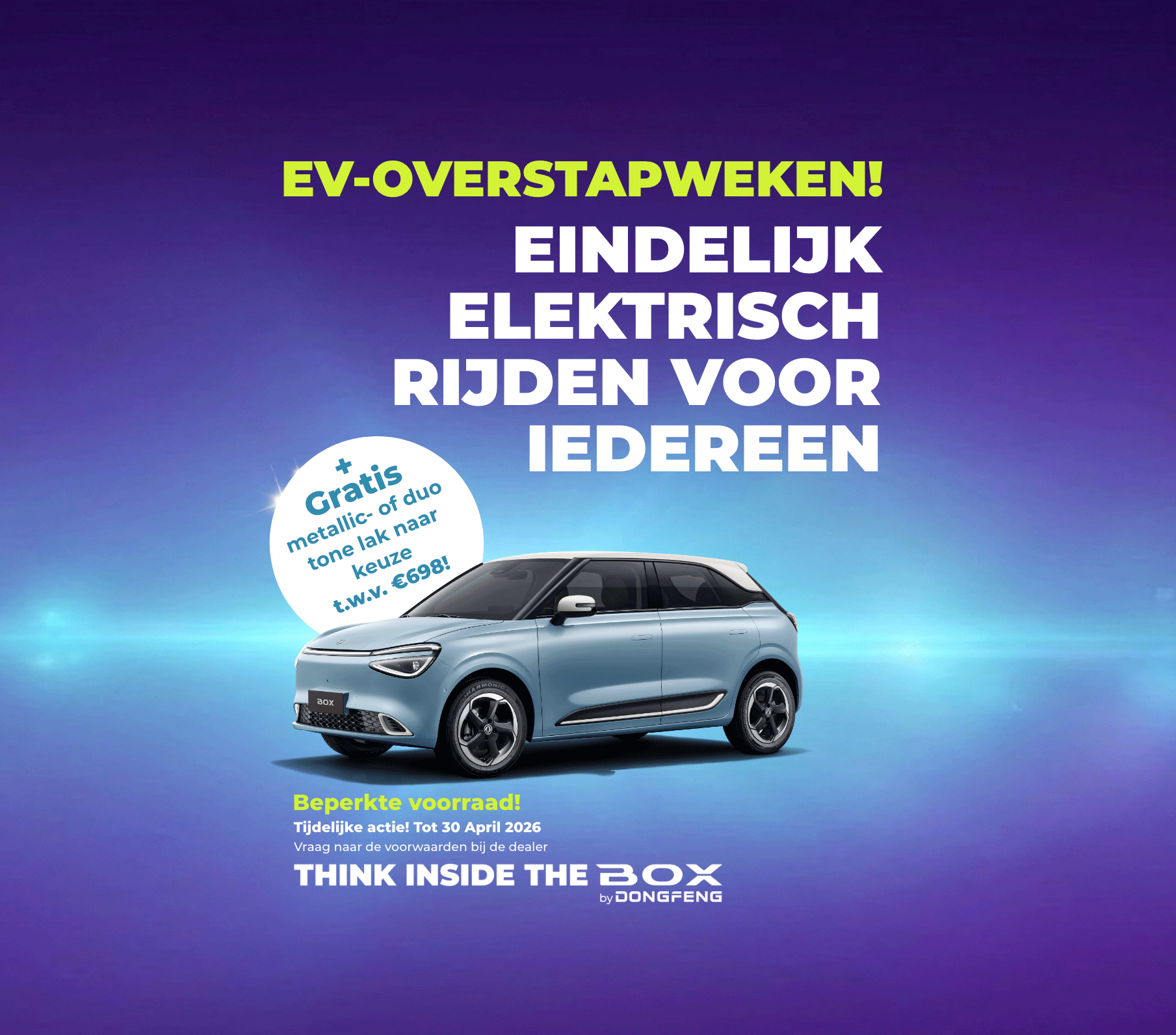 Profiteer tijdens de EV-overstapweken tot 30 april bij Gomes van extra voordeel op de elektrische Dongfeng BOX.