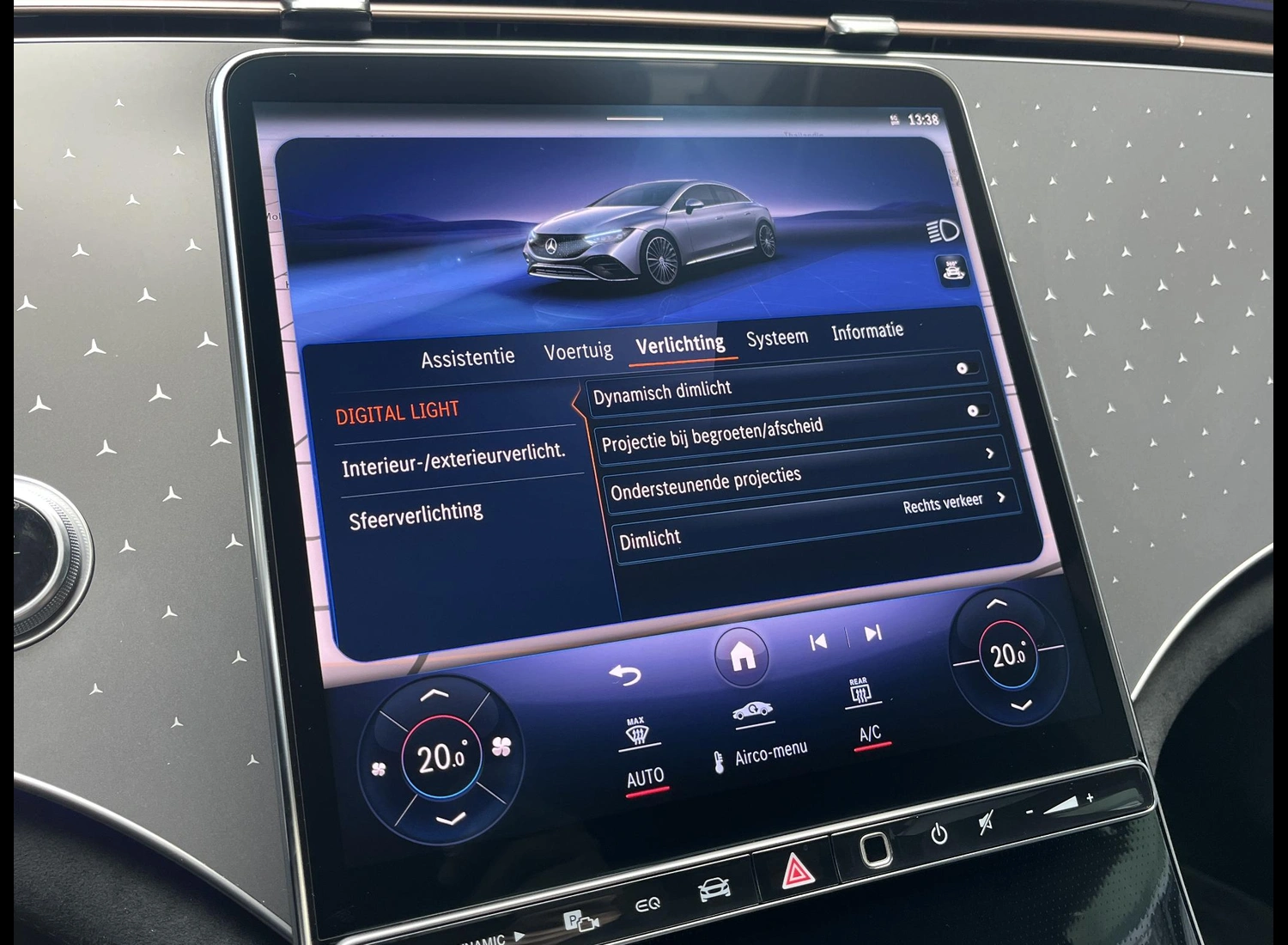 - Omgevingsverlichting in beide spiegels met projectie van het merklogo
