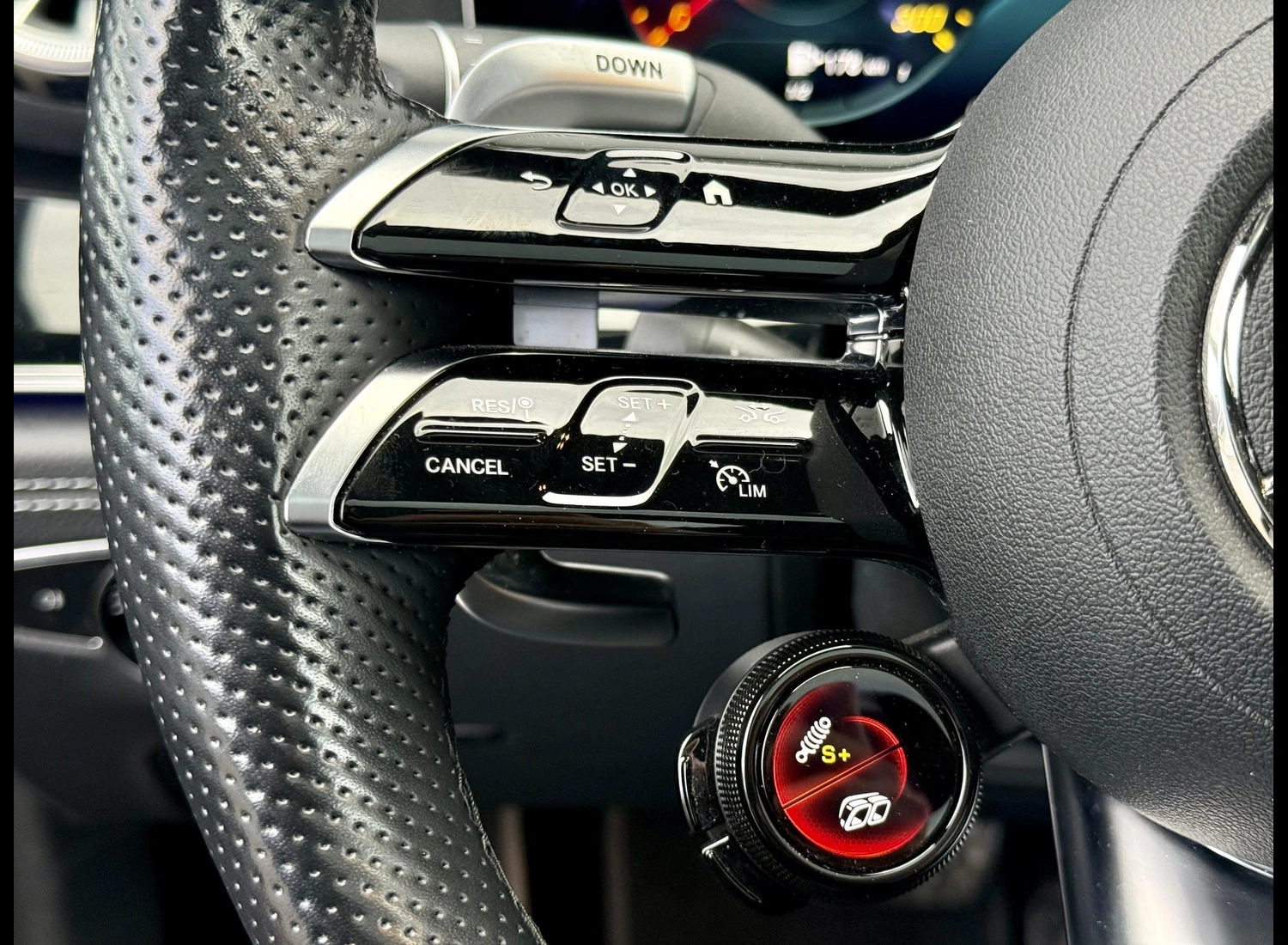 • AMG Performance stuurwiel in nappaleder, afgevlakt onderaan met chroom sierinleg en AMG logo