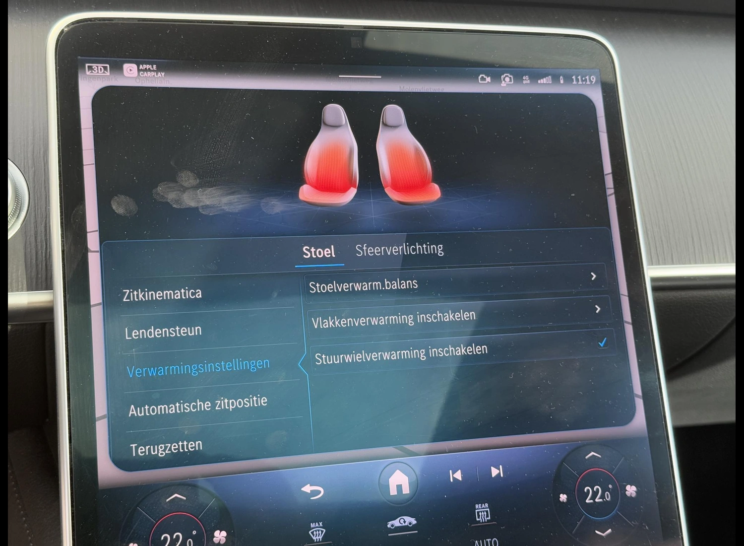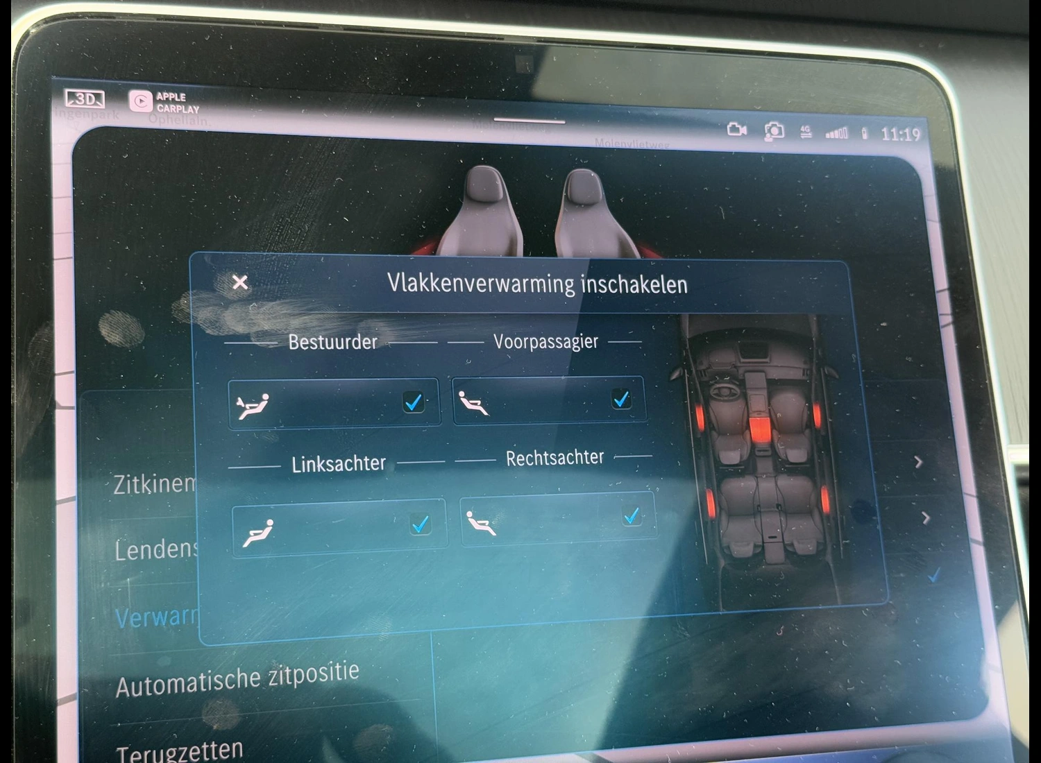 • Stoelverwarming achter